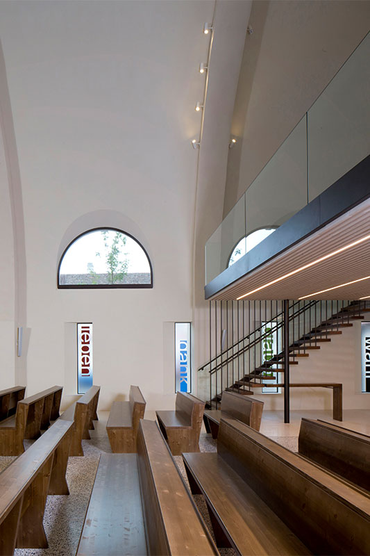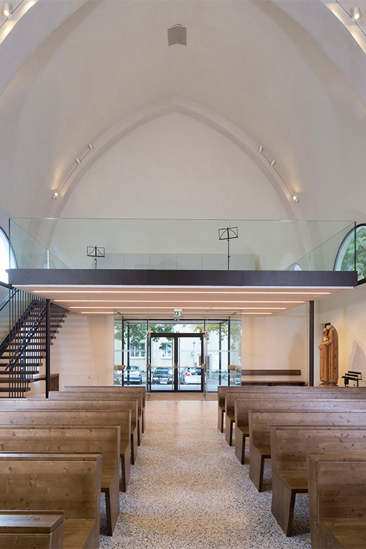 Verbesserung der natürlichen Belichtungsverhältnisse durch neue Belichtungselmente im Kirchenschiff und in der Wochentagskapelle inkl. künstlerischer Gestaltung dieser.