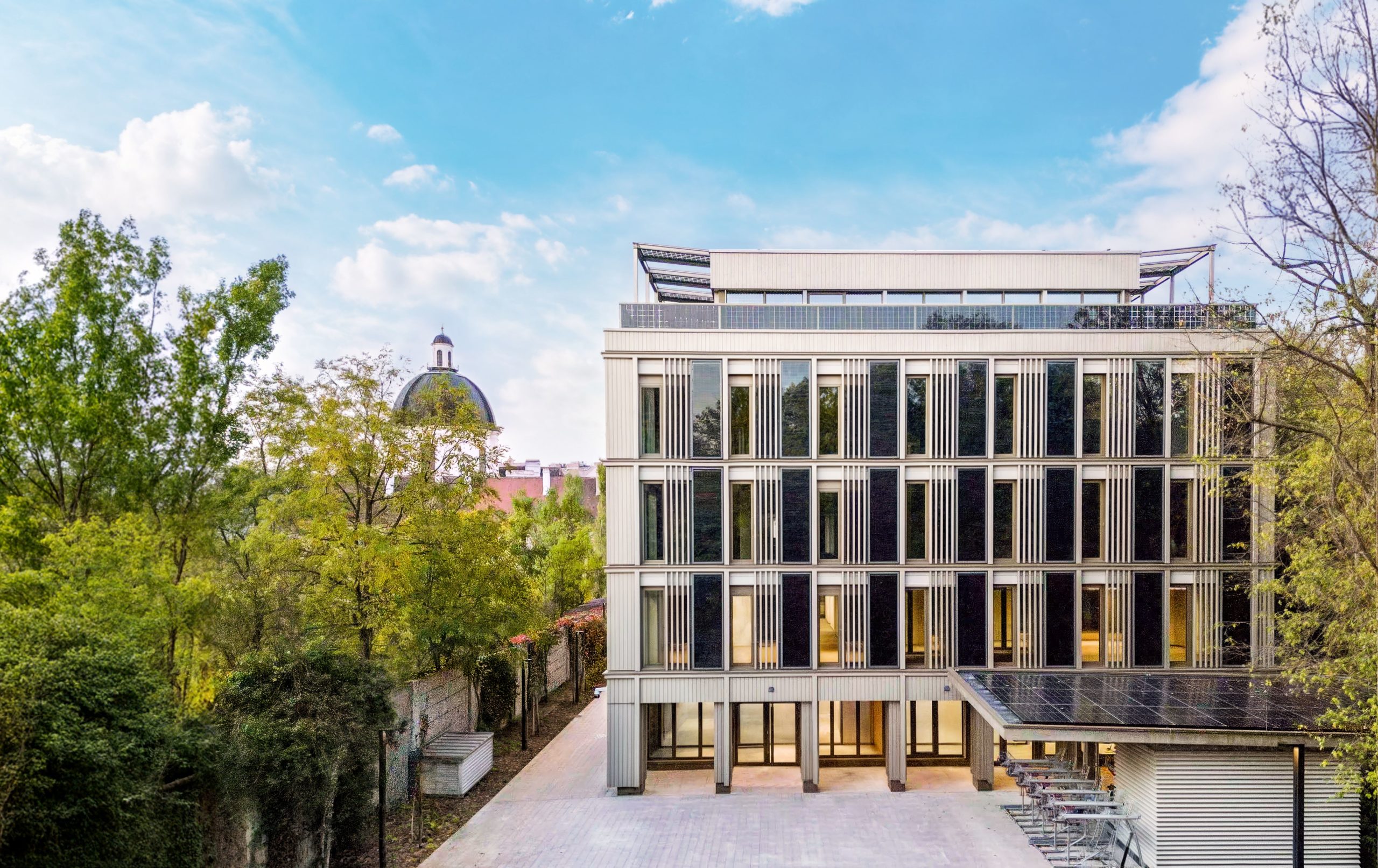 Im Mittelpunkt der Sanierung stand neben der energieeffizienten und modulweisen Fassade, die Errichtung eines Erdwärmesondenfeldes im Bestand. Ergänzend wurde Photovoltaik sowohl am Dach als auch integriert in der Fassade ausgeführt.
